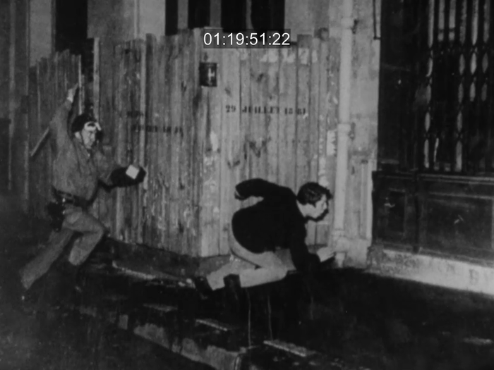 La violence policière est largement évoquée. Le ciné-tract 004 montre une nuit de barricades au Quartier Latin selon un ordre chronologique rigoureux, dans une succession rapide de gros plans de CRS chargeant et de manifestants à terre :