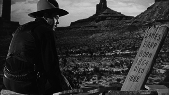L’image chez Ford plonge l’individu dans la totalité même du monde où cœxistent l’idée et sa réalité, sa trace documentaire tout au moins. Le fleuve tranquille ou tumultueux de l’histoire y est immédiatement visible comme une réalité indépendante de la volonté des individus. Ce que l’on appelle le progrès est désormais vu avec une lucidité implacable dont on ne retrouvera l’équivalent cinématographique que dans l’œuvre de Jean Renoir, autre génie irréductible à toute lecture préexistante à son art. C’est l’abyssale interrogation (The Man Who Shot Liberty Valance / L’Homme qui tua Liberty Valance) qui retourne l’idéologie « progressiste » pour se demander s’il fallait, au bout du compte, désirer ce que l’on appelle la civilisation.