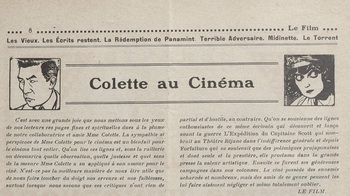 A l’occasion du 150e anniversaire de sa naissance, présentation en continu de documents autour de Colette, critique et journaliste de cinéma : textes critiques (Le Film, Cinéa…), reportages sur les tournages, portraits et ciné-romans.