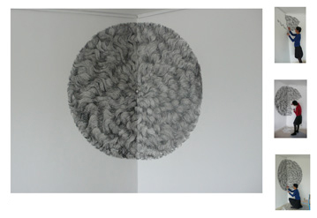 Depuis 2007, l'artiste nantaise Marie Drouet se consacre à des chevelures d'encre et de papier : les "paysages-chevelure", panoramas de fils graphiques tendus vers l'infini dont les dimensions varient selon l'espace d'accrochage ; les "albums", œuvres portatives aux creux desquelles se replient plusieurs mètres de dessins en attente d'un déploiement ; les "chevelures circulaires", oursins capillaires variant de 40 cm à 1,50 m de diamètre – les plus petits ayant fait l'objet d'un livre d'artiste – et, enfin, les "cadrages". Ces derniers se présentent comme des labyrinthes hypnotiques construits autour d'un vide central : la chevelure se dilate depuis cette béance, indiquant un territoire imaginaire au-delà des frontières du cadre.