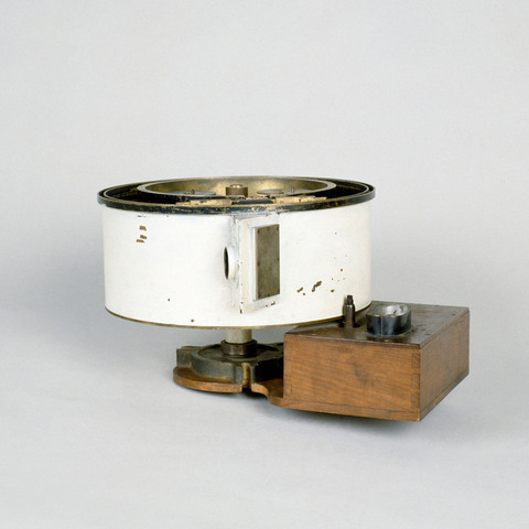 "Le Périphote est l'appareil servant à la prise des vues destinées à être projetées par le Photorama. Le principe appliqué dans cet appareil est le même que celui du Photorama, mais ici nous n'avons qu'un seul objectif tournant autour de la surface sensible alors que dans le Photorama, pour avoir le maximum d'éclairement et le minium de vitesse angulaire de l'appareil, en emploie douze objectifs. (...) Comme la bobine peut supporter environ 15 mètres de bandes et que la circonférence du tambour est d'environ 65 centimètres, on peut donc, sans entrer dans le laboratoire, obtenir environ 20 vues panoramiques différentes. Mais il serait impossible d'enrouler exactement la partie impressionnée, puisque rien à l'extérieur ne permet de connaître la quantité de bande enroulée. Nous avons donc eu recours à un dispositif breveté constitué comme suit : la bande sensible porte, tous les 70 centimètres, une perforation rectangulaire ; de plus la pièce coudée F porte à son extrémité un doigt d capable de traverser cette perforation au moment où le trou se présentera devant lui. (...)" (Brevets Lumière. Périphote et Photorama, 33 rue Joubert, Paris, s.d.).