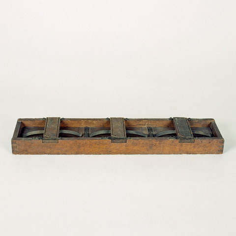 Chassis en bois avec trois presseurs pour la fabrication des clichés panoramiques Lumière.
