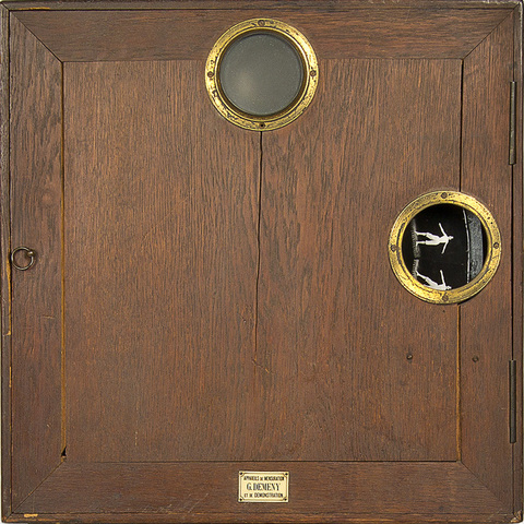 Etiquette laiton sur le devant : "G. Demenÿ - Phonoscope. Otto Lund Const. Paris". Etiquette au dos : "Appareils de mensuration et de démonstration".