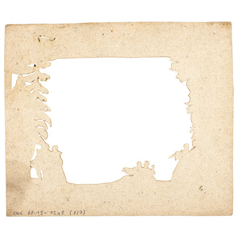 sept gravures rehaussées de couleurs, finement découpées et montées sur cadre bois, à disposer verticalement les unes après les autres, dans un ordre indiqué, à l'intérieur de la boîte d'optique CNC AP-11-1119, de façon à être observées à travers une lentille amplificatrice et un miroir incliné, et ainsi créer une forte illusion de perspective, voire de relief